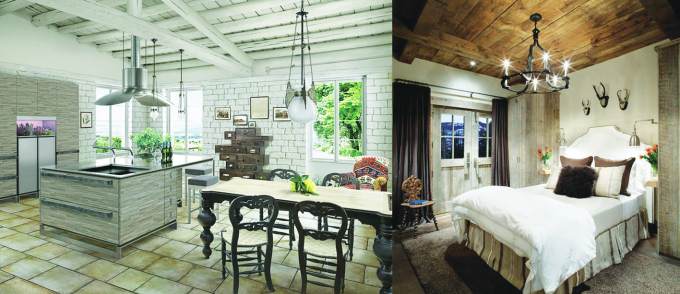Ambientes de estilo rústico, donde se mezclan materiales como la piedra y la madera, o madera y vidrio, que conceden un aspecto más