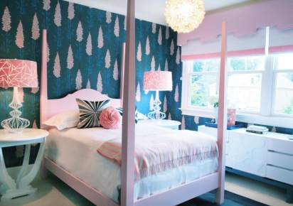 Diseño de galerías para dormitorio juvenil que han sido forradas en tela.