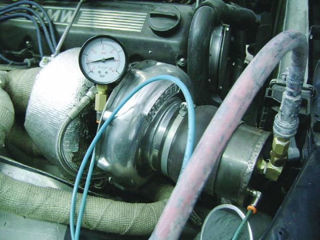 \\ Acoplar un manómetro de aire en el tubo que va desde el colector de admisión hasta la válvula de descarga, cuyos manguitos tengan la sufciente longitud para poder tener el manómetro en el interior del vehículo.
